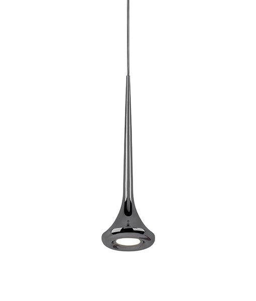 Suspension de lampe à LED unique, en forme de trompette élancée avec diffuseur inférieur dépoli. Équipé de notre puissante technologie LED 120V AC. Finition chromée: disponible dans une variété d'options de suspension multiple voir la série pour les détails de la famille Finition chrome noir et laiton vintage: créez votre propre configuration, choisissez le nombre de pendentifs et choisissez la forme et la taille de la verrière en conséquence.