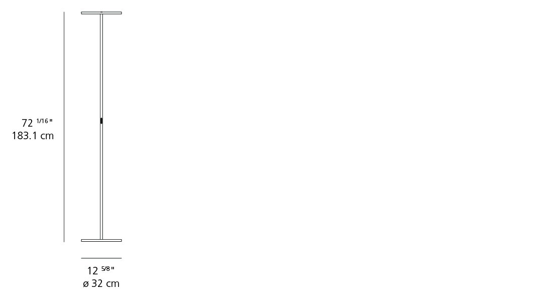 Deux disques minces et identiques à la base et au sommet sont connectés par une fine tige tubulaire (6 mètres de hauteur). Son élégance épurée en fait un objet intemporel.