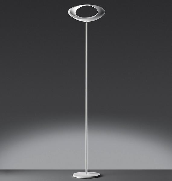 Le lampadaire Cabildo est doté d'un surprenant diffuseur englobant la source lumineuse DEL et diffuse comme par magie un halo lumineux indirect, flottant entre sol et plafond.