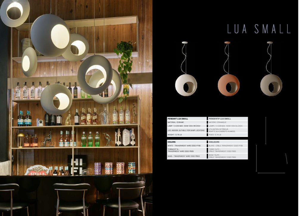 La dernière création du designer et céramiste Mauricio D'Avila, la suspension Lua et Lua Small.