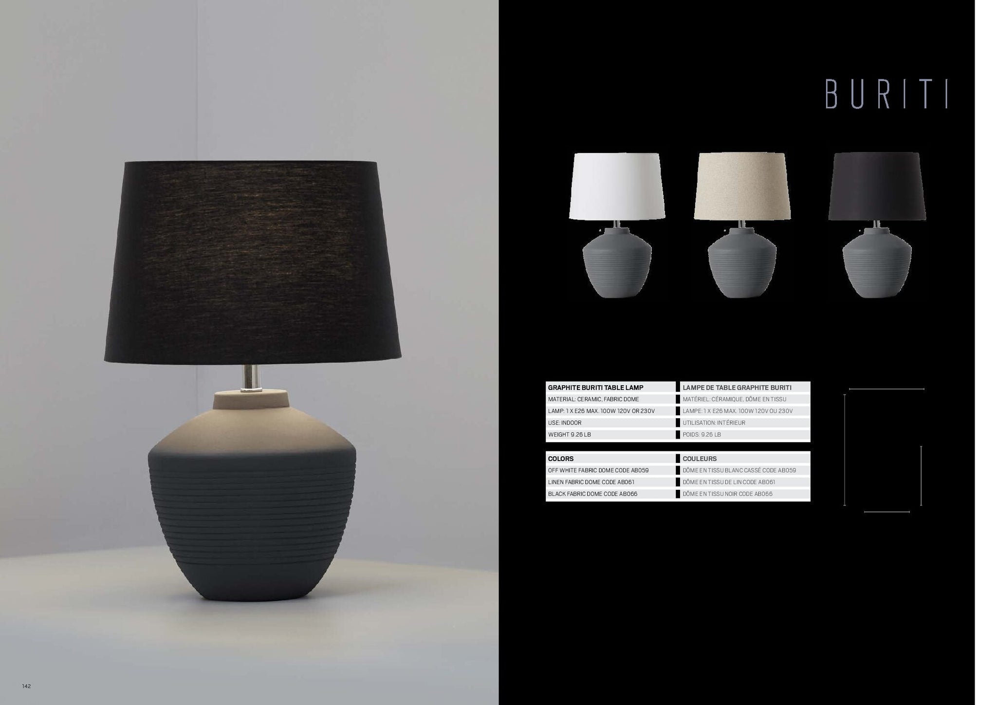 Couleur du dôme : tissu blanc cassé, tissu en lin et tissu noir