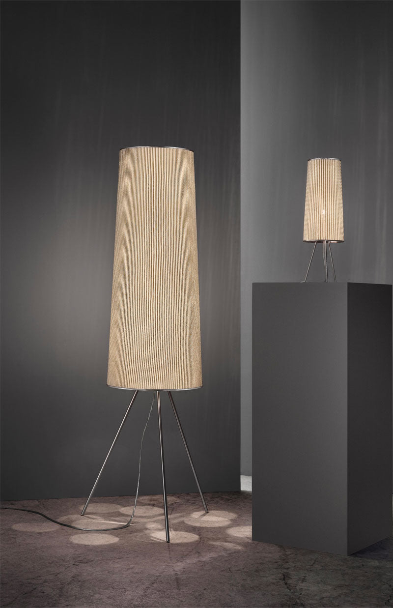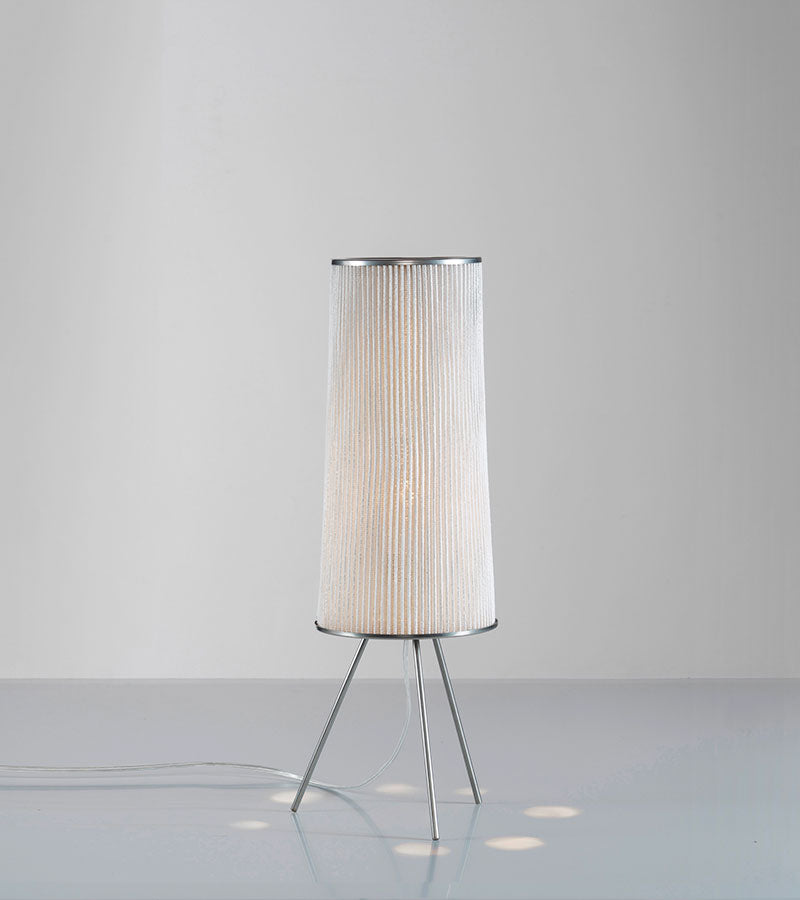 Ura, la collection conçue par Arturo Alvarez, est faite à la main par des plis délicats, d'où émergent des formes reconnaissables dans la nature. La collection présente 3 suspensions pouvant être combinées entre elles, une lampe à poser et un lampadaire. Ura small joue avec la géométrie en combinant des lignes pures dans sa forme et en projetant un jeu de cercles sur la table où est posé et au plafond. La collection est en maille d'acier inoxydable peinte.