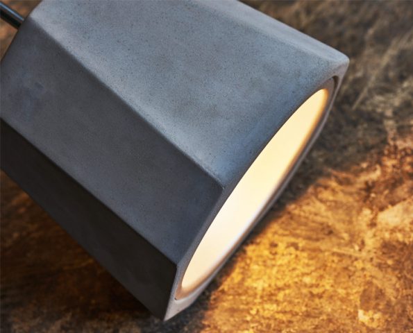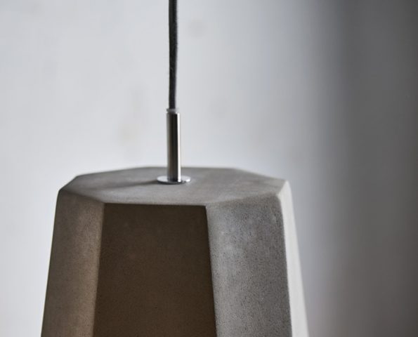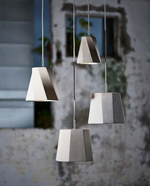 L'abat-jour en béton à facettes de la suspension CASTLE ROCK est une représentation géométrique de ce que l'on trouve dans la nature. L'extérieur en béton mat est contrasté par un intérieur métallique qui réfléchit et amplifie la lumière projetée vers le bas pour un éclairage doux.