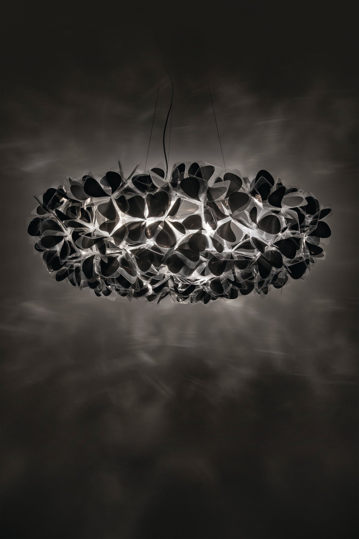 Qui n’a jamais, au moins une fois dans sa vie, détaché les pétales d’une marguerite pour s’interroger sur l’amour qu’il/elle ressentait ? Clizia Mama Non Mama est une lampe à suspension inspirée par la pureté de la nature : les pétales légers et délicats de ce bouquet lumineux apportent aux intérieurs une bouffée d’air frais et une allure équilibrée. Réalisée à la main selon un système d’emboîtements de Cristalflex®, c’est un hymne à la joie, à la féminité, à l’amour primordial, à la pureté des sentiments. Le câble rouge n’est pas en accord avec son environnement ? Vous pouvez le demander en version incolore transparente.