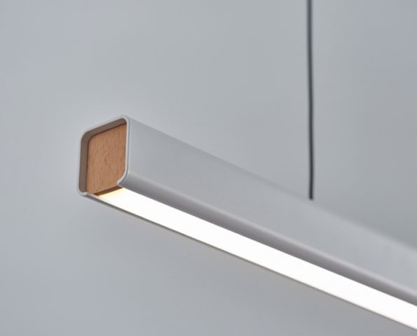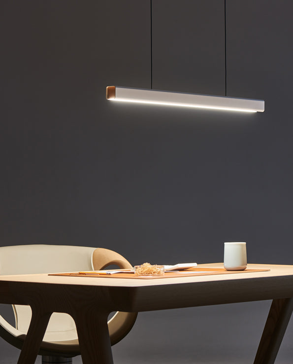 Le designer Dian maîtrise l'art du travail du bois depuis des années. Il a toujours eu une appréciation de la nature organique du matériau exposé. Dans la suspension MUMU, il utilise la fraîcheur du métal associée à une source de lumière LED, et contrebalance cela avec la chaleur du bois aux deux extrémités de la suspension. La suspension MUMU est disponible en deux versions: blanc mat avec hêtre et noir mat avec noyer.
