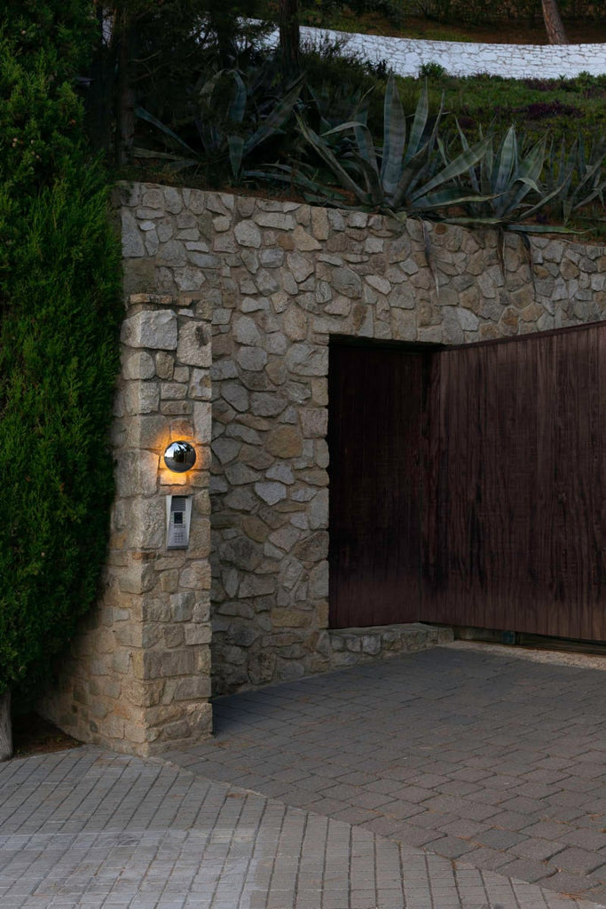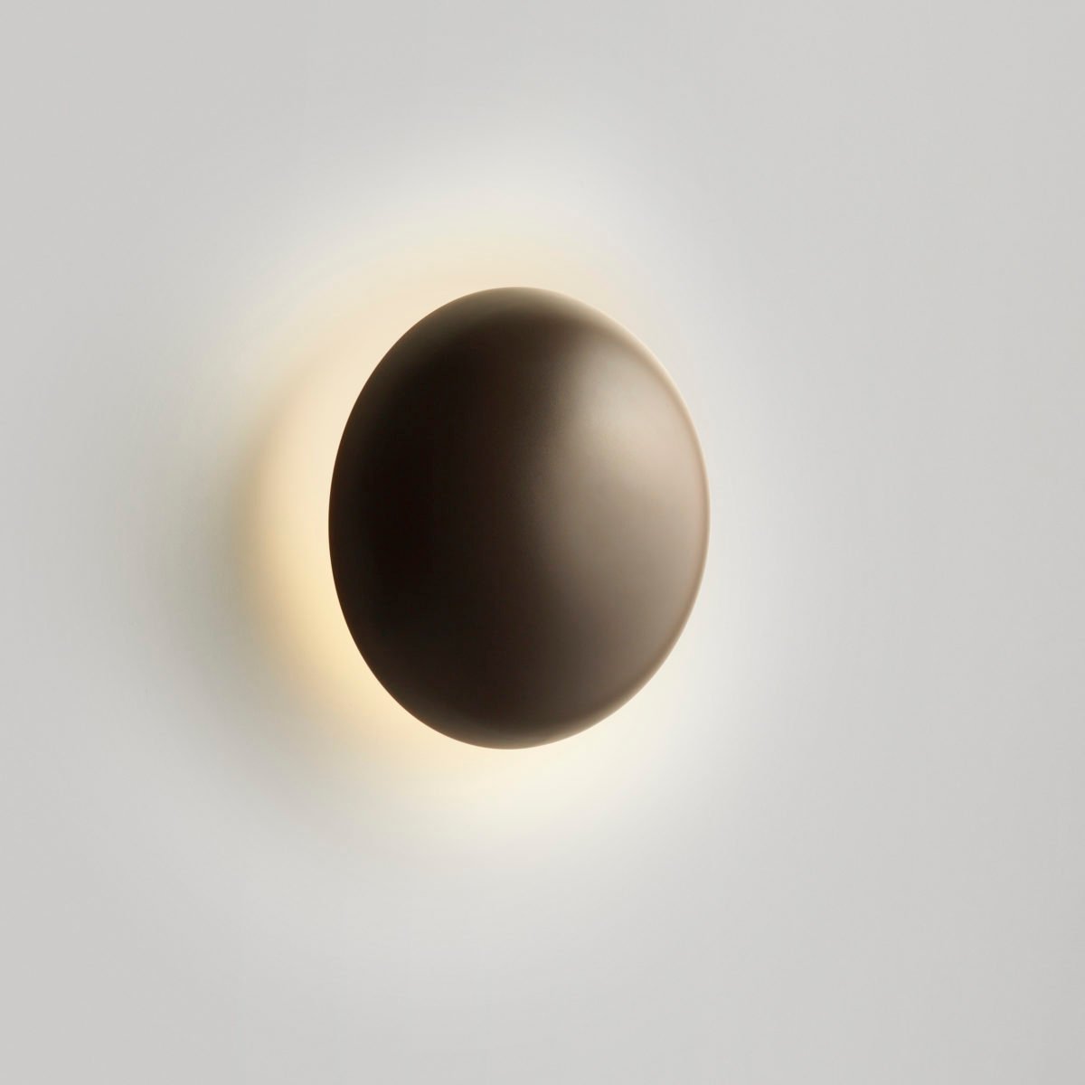 Babila est disponible en deux tailles, 18 et 28 cm de diamètre, et est également disponible en aluminium verni blanc mat ou marron, qui offrent une alternative plus discrète à la finition chromée. Dans chacun d'eux, une aura de lumière floue est générée, un détail qui contraste avec son matériau. Son éclairage est indirect, doux au mur et bien intégré aux espaces extérieurs.