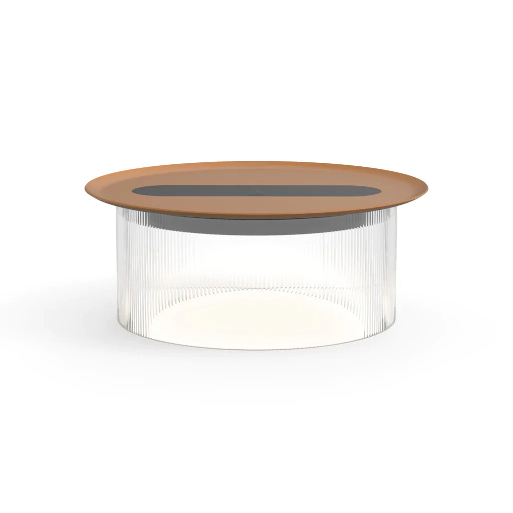 Le carrousel brouille la frontière entre l'ambiance et l'utilité en combinant une surface de plateau de chargement sans fil à réglage bas pour vos appareils mobiles avec un éclairage chaud et sans éblouissement. Son module d'éclairage LED à profil bas est discrètement dissimulé sous son plateau d'accouplement et suspendu au sommet d'un diffuseur cylindrique en acrylique cannelé transparent qui émet des motifs lumineux fascinants sur la surface de la table en dessous. Parfaitement adapté à une utilisation de bureau ou de chevet, Carousel incarne une perspective hybride unique sur ce que peut être une lumière personnelle. Le diffuseur de base est proposé en teinte claire et bronze et peut être associé à un plateau en acier repoussé en finitions blanc mat, terre cuite et noir.