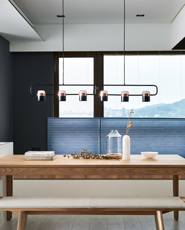 Avec un mélange harmonieux de minimalisme, laissez le LING briller. Inspiré par la beauté des clôtures métalliques à motifs construites autour des balcons et des fenêtres, LING Pendant 6 est un interlude nostalgique bien orchestré. Avec une source de lumière LED intégrée, la suspension réglable du LING crée avec grâce la configuration d'éclairage parfaite en constante évolution pour répondre à vos divers besoins. Avec une grâce aérienne, le LING Pendant 6 fournit un éclairage suffisant tout en restant propre et sans couture.