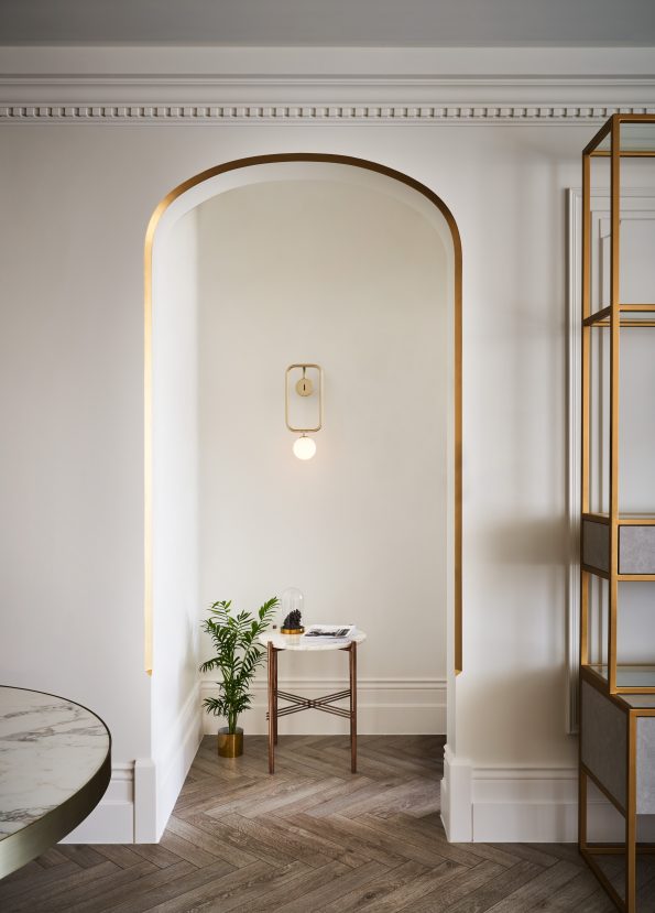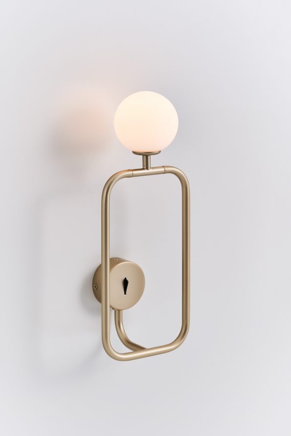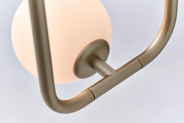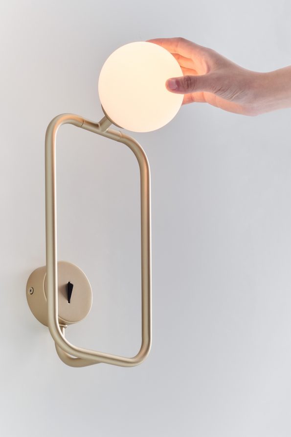 Applique murale Sircle, une symbolisation fusionnée Square et Circle, inspirée de la philosophie esthétique de l'Est, la boule lumineuse circulaire tout comme un esprit doux et tendre s'appuie sur le cadre rigide et prudent, façonnant chimiquement un élément harmonieux avec son corps flexible à l'envers. Pendant ce temps, la performance fantastique de la lumière à travers le verre soufflé à la bouche opale, répandant la beauté du clair de lune dans tout l'espace.
