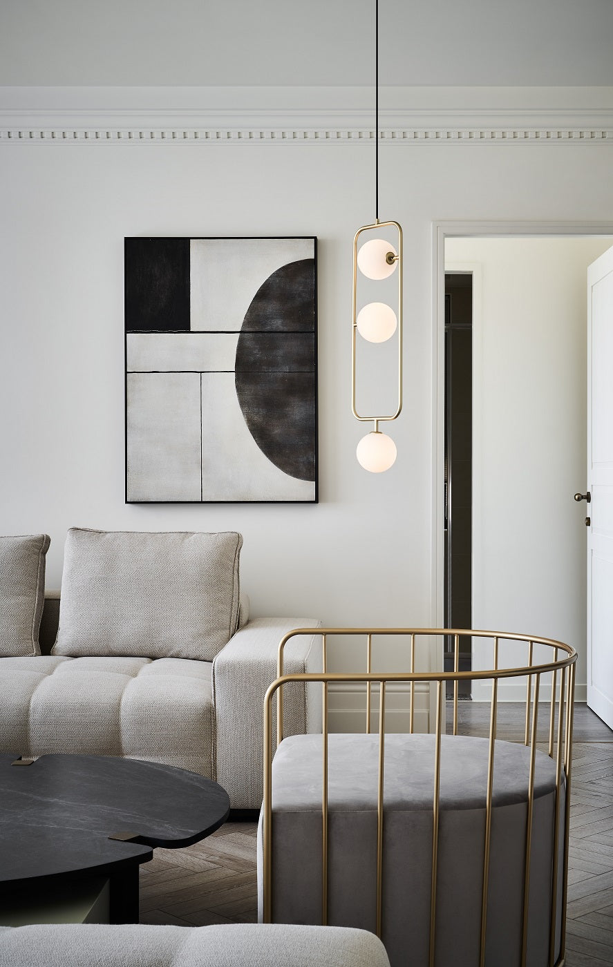 Sircle Pendant PV3, une symbolisation fusionnée Carré et Cercle, inspirée de la philosophie esthétique orientale, la boule lumineuse circulaire tout comme un esprit tendre et doux s'appuie sur le cadre rigide prudent, façonné chimiquement un trait harmonieux avec son corps flexible à l'envers. Pendant ce temps, la fantastique performance de la lumière à travers le verre opale soufflé à la bouche, répandant la beauté du clair de lune dans tout l'espace.
