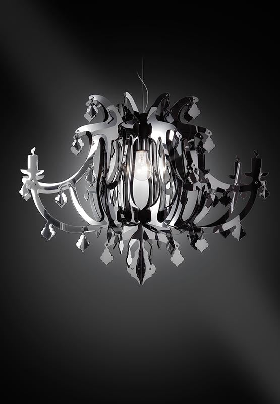 Un lustre à 8 branches classique a subi une évolution numérique ; la somptueuse forme moderne de Ginetta s'étend à partir d'une source lumineuse centrale qui jette des reflets élégants et raffinés, se fondant dans des atmosphères modernes et aristocratiques. Le diffuseur cylindrique en polycarbonate irisé est entouré de trois finitions : métal, prisme ou Opalflex®.