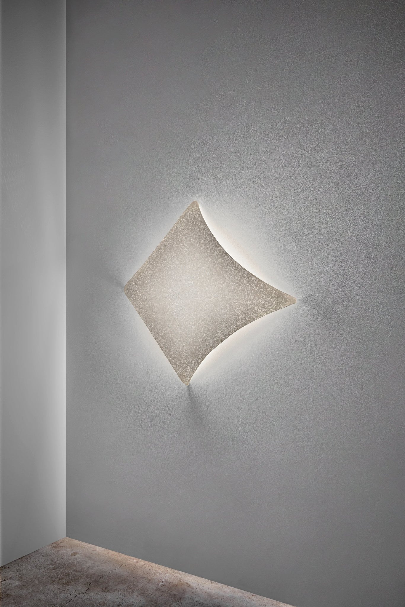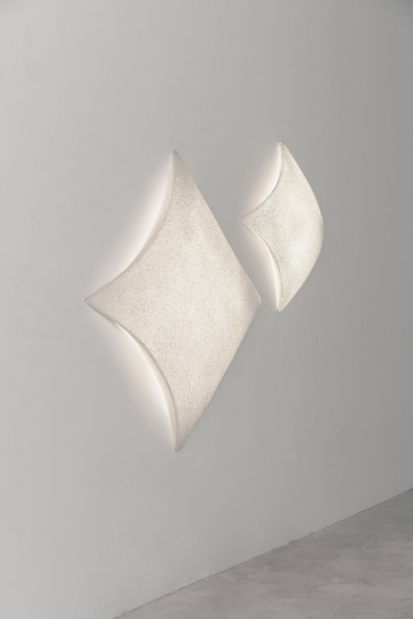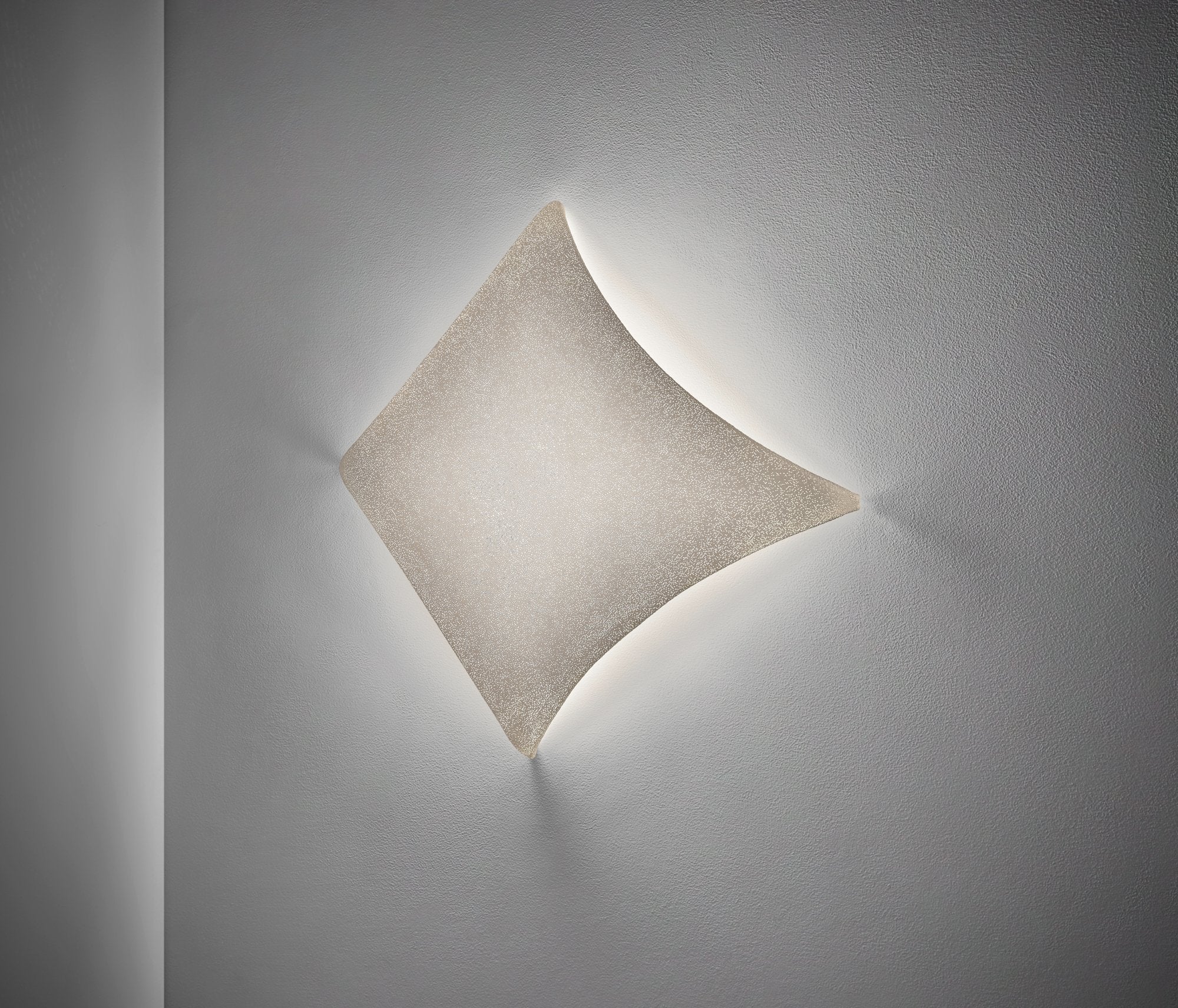 La collection Kite est formée par des avions incurvés qui semblent voyager à travers les murs et les plafonds déplacés par le vent. Des lampes légères en apparence malgré leurs grandes dimensions, grâce à leur revêtement lisse SIMETECH® qui re-marque la tension de ses lignes. Les différentes tailles sont faites pour permettre des compositions originales, qui, tout comme les vrais cerfs-volants dans le ciel, remplissent l'espace d'une lumière chaleureuse et gaie.