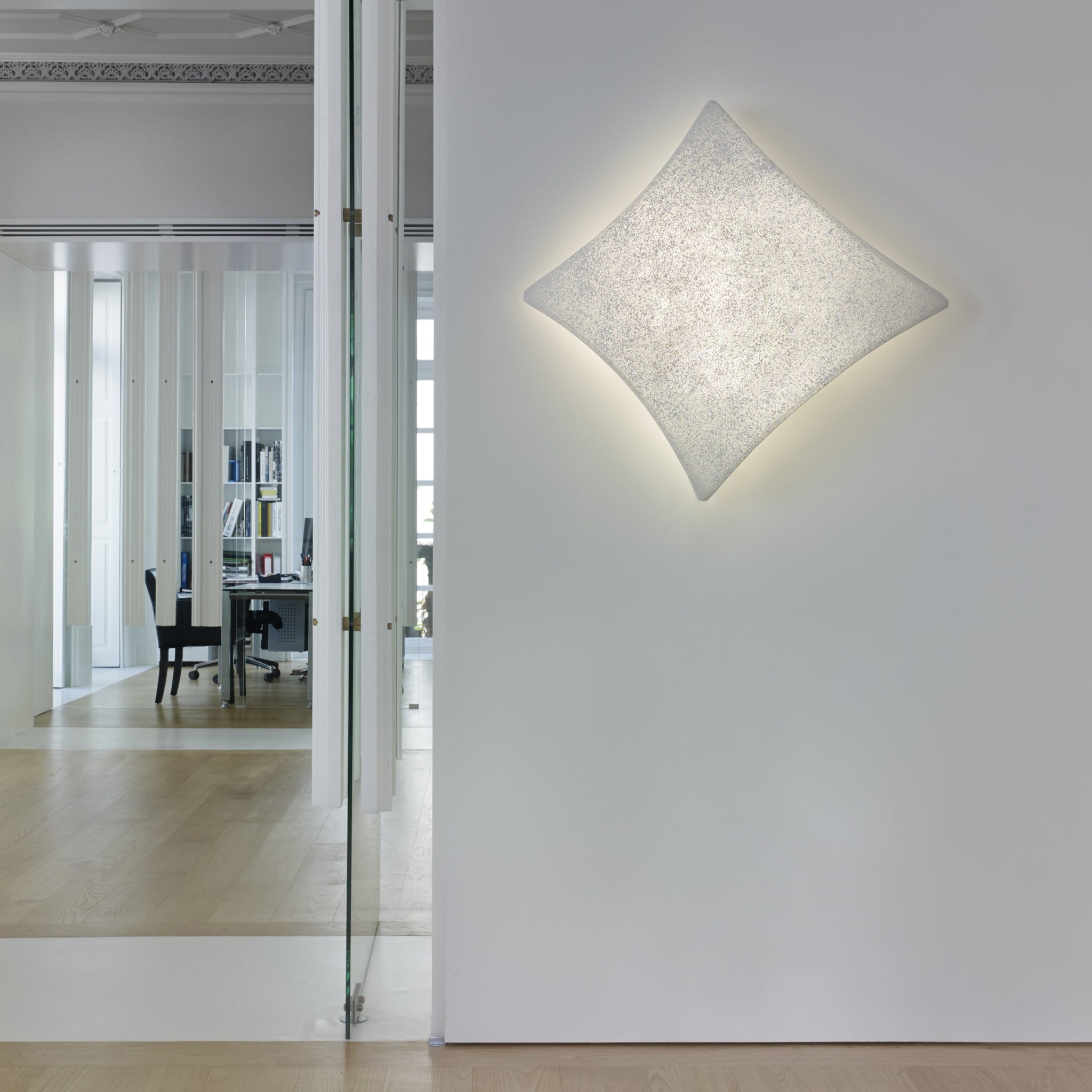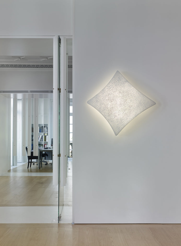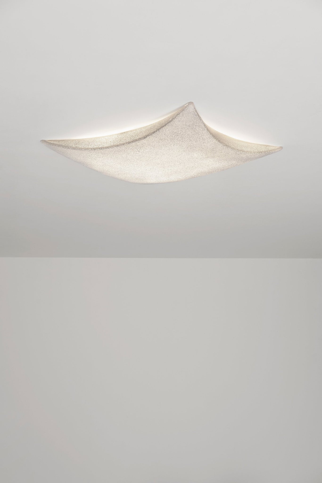 La collection Kite est formée par des avions incurvés qui semblent voyager à travers les murs et les plafonds déplacés par le vent. Des lampes légères en apparence malgré leurs grandes dimensions, grâce à leur revêtement lisse SIMETECH® qui re-marque la tension de ses lignes. Les différentes tailles sont faites pour permettre des compositions originales, qui, tout comme les vrais cerfs-volants dans le ciel, remplissent l'espace d'une lumière chaleureuse et gaie.
