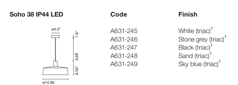 L'utilisation de polyéthylène moulé par rotation nous permet d'offrir facilement ce luminaire dans une large gamme de tailles. Alors qu'avant la collection Soho offrait des diamètres de 57 et 112 cm, elle est désormais également disponible dans une taille plus petite, ne mesurant que 38 cm. Cette nouvelle taille est plus appropriée pour les petits espaces et augmente la polyvalence globale de ce luminaire.
