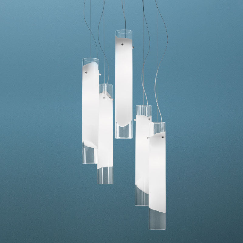 Une gamme complète de lampes qui partagent un design minimal et discret qui tire le meilleur parti de la source de lumière, grâce à la bande blanche traslucide insérée dans le verre.