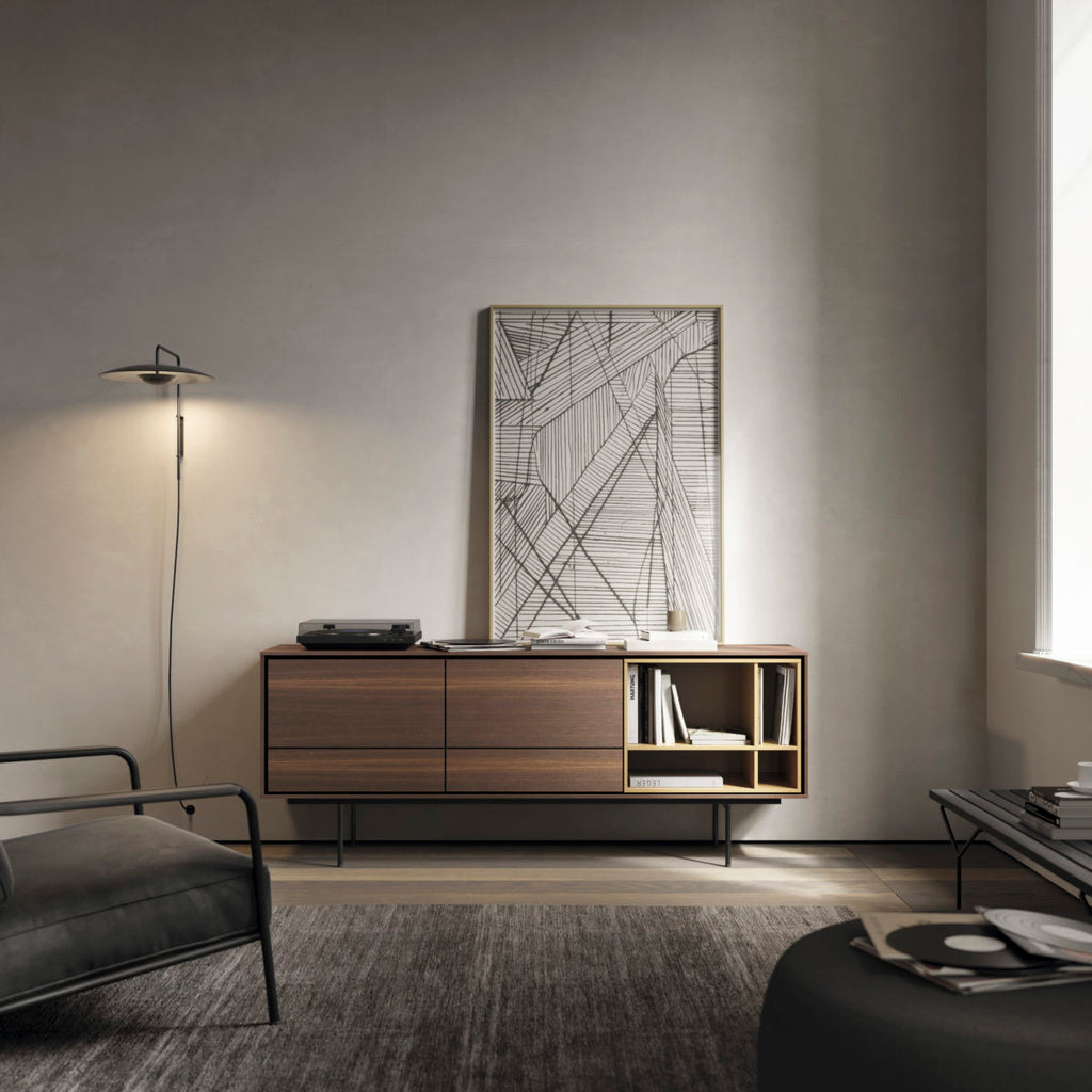 Le bois est un grand allié de l'éclairage cosy. C'est une matière difficile à mouler, un défi que la collection Ginger résout avec brio. La combinaison de feuilles de bois, de papier et de résines pressées ensemble sous haute pression permet d'obtenir un stratifié qui apparaît presque entièrement plat, qui éclaire discrètement les espaces avec une lumière indirecte.