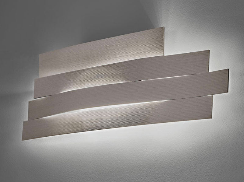 Li est une collection d'appliques conçues par Arturo Álvarez et fabriquées à partir de bandes de cellulose pressées obtenues grâce à un processus de recyclage respectueux de l'environnement. Ce matériau, utilisé au Japon pour l'emballage depuis le XVIe siècle pour sa grande résistance, a été idéal pour créer les lignes courbes de différentes dimensions qui composent la lampe. L'utilisation de la lumière LED contribue à renforcer la durabilité de la petite applique murale Li, qui, comme de douces vagues de la mer, baigne les murs de la luminosité subtile qui perce à travers ses bandes.