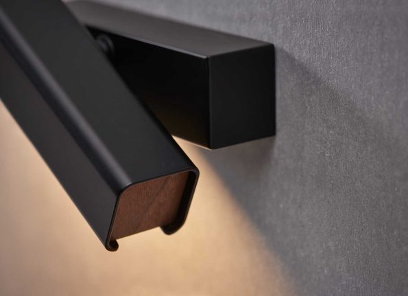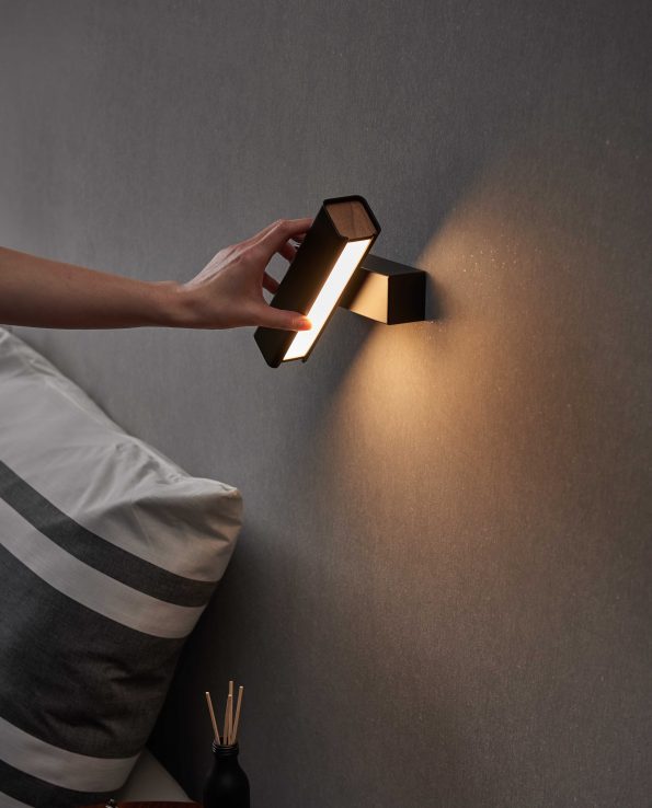 Le designer Dian maîtrise l'art du travail du bois depuis des années. Il a toujours eu une appréciation de la nature organique du matériau exposé. Dans l'applique murale MUMU, il utilise la fraîcheur du métal associé à une source de lumière LED, et contrebalance cela avec la chaleur du bois aux deux extrémités du pendentif. L'applique murale MUMU est disponible en deux versions: blanc mat avec hêtre et noir mat avec noyer.