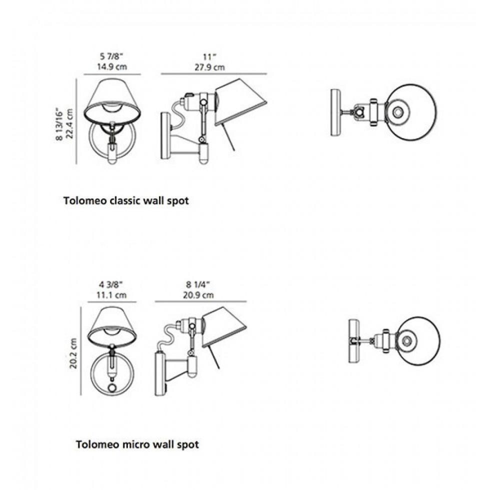 Wall lamp in polished aluminum, diffuser, adjustable in all directions, in opaque anodized aluminum. Available in two sizes. Tolomeo micro faretto is available either with dimmer or with switch located on the wall bracket. Direct and adjustable light emission. Color: aluminum.