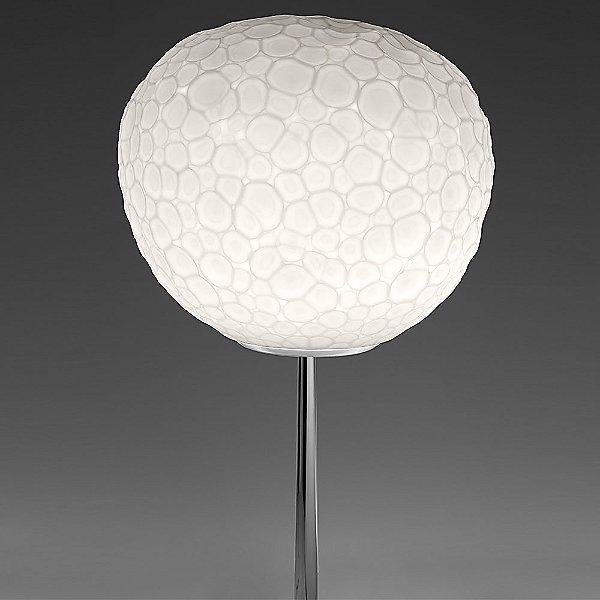 The double-layered glass is frosted and mounted on a techno polymer and steel body (or aluminum stem for table.)