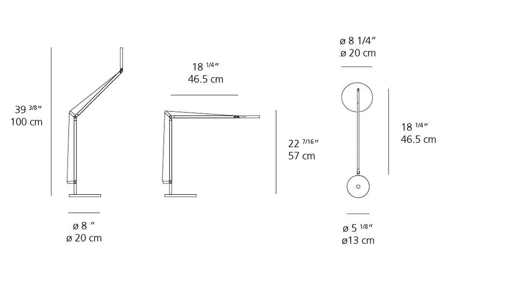 Simple in concept, Demetra has an adjustable, turnable and tiltable head with integrated dimmer switch atop an extending arm allowing for direct LED light diffusion.