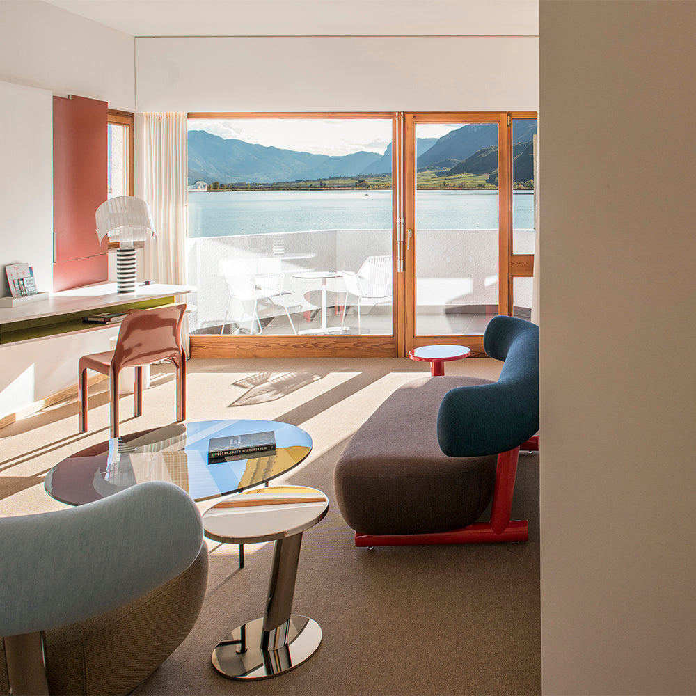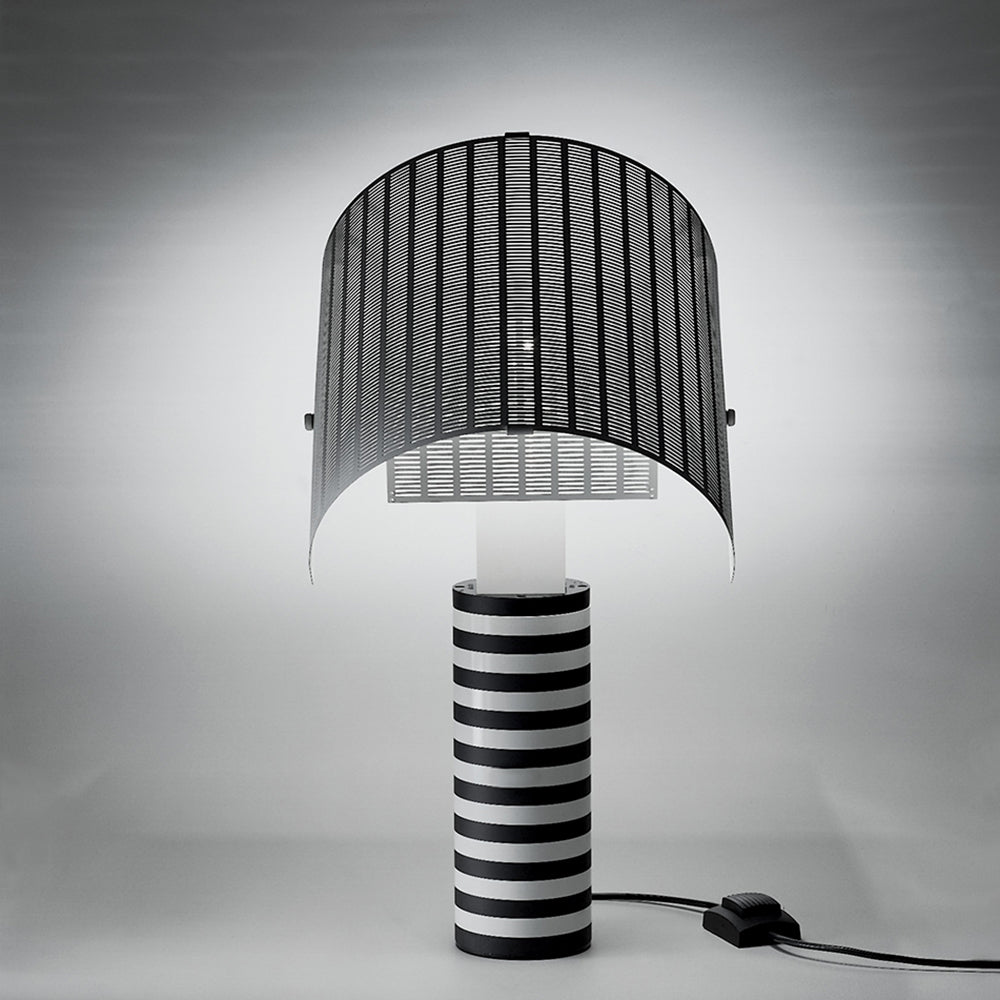 La lampe en métal Shogun a été conçue en 1986 par l’architecte suisse Mario Botta. Aujourd’hui exposée au Metropolitan Museum de New York, cette lampe est devenue une icône. Shogun présente des similitudes flagrantes avec les constructions architecturales de Mario Botta : maîtrise de la lumière, recherche d’une simplicité des formes dans un équilibre entre richesse et sobriété. Shogun se compose d’un pied en métal verni sur lequel s’articulent deux diffuseurs orientables en tôle d’acier perforée.