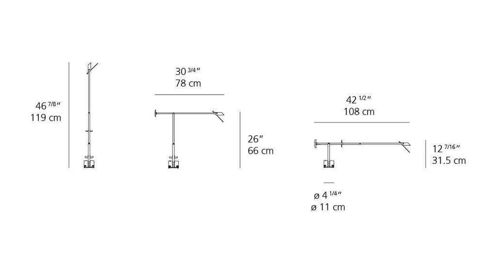 Introduced in 1972, the lamp is built with two counterweights allowing the user to direct the light at will.