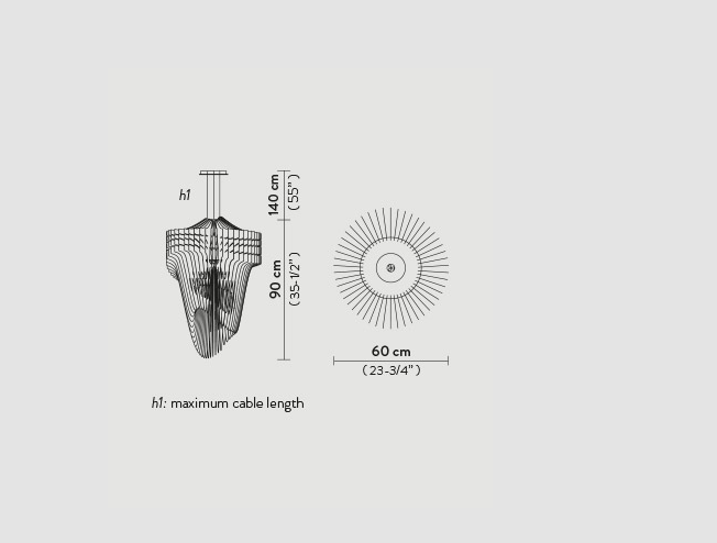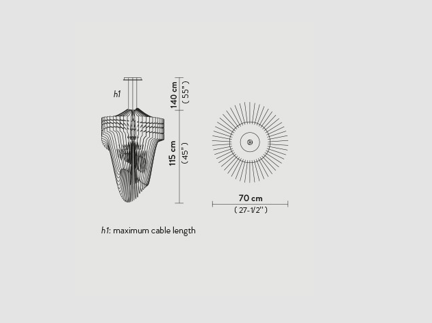 Zaha Hadid’s luminous architecture is visionary, fluid and dynamic, infusing the revolutionary and iconic semantics of the celebrated architect into domestic and public interiors; the result is the harmonization of beings and their surrounding spaces. From the new metallized Gold (50, 60 and 70 cm), the original version with shaded black edges (Ø90 cm), to the ethereal transparent, polycarbonate versions, Hadid’s masterpieces consist of 50 “arms”, each diverse from the others, radiating around a voluminous LED source.