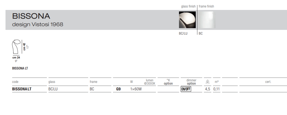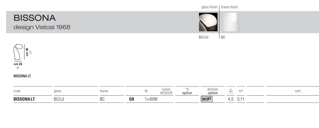 The delivery time for Vistosi products is approximately 6-8 weeks if not in stock at our warehouse