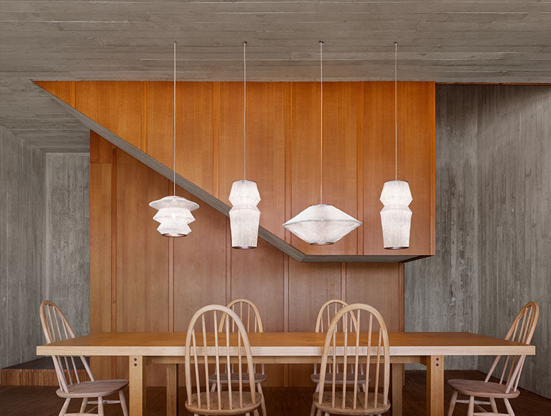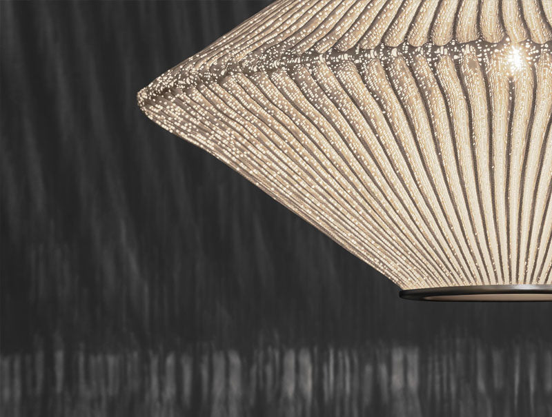 Ura 1 est une suspension conçue par Arturo Álvarez qui est fabriquée à la main avec des plis délicats, d'où émergent des formes reconnaissables dans la nature. Combinable entre eux, ils créent ensemble un jeu harmonieux de volumes qui se contractent et se dilatent et respirent à eux seuls une subtile légèreté. La collection de lampes faites à la main est en maille d'acier inoxydable peinte.