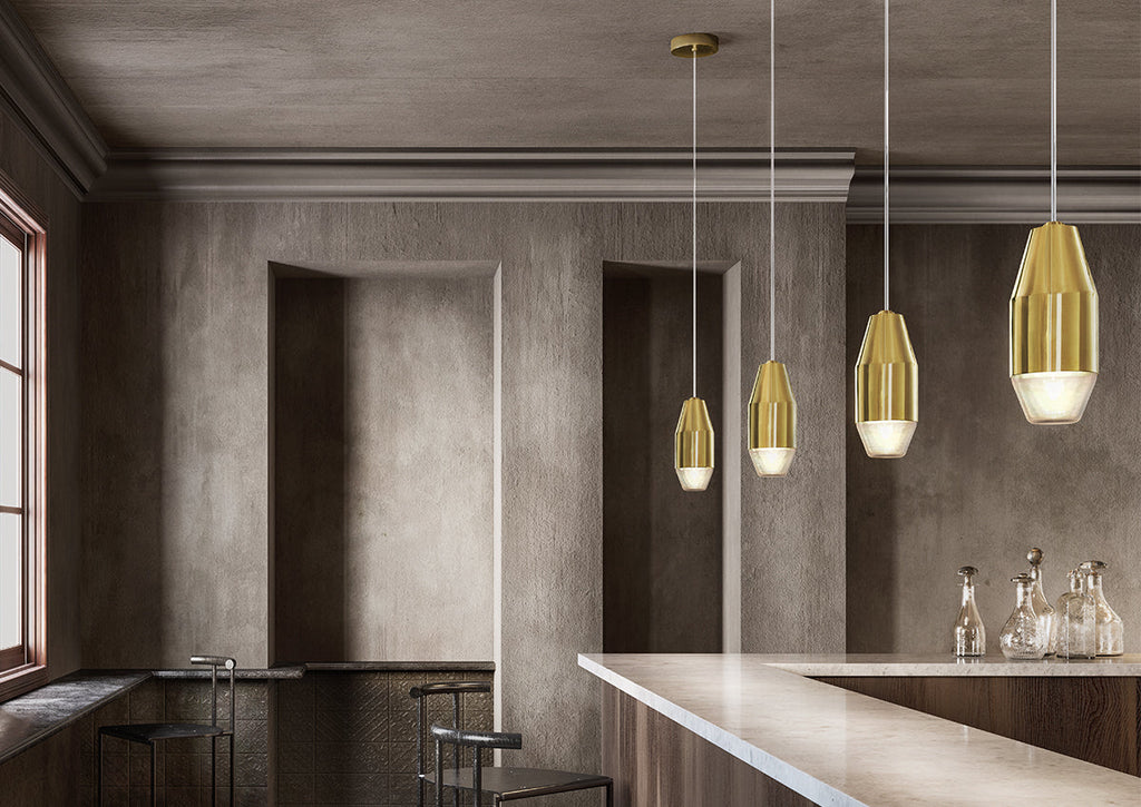 Le désert de Yuma s’étend entre les États-Unis et le nord du Mexique et revit dans la culture conceptuelle du designer David Pompa. Le corps en laiton brillant de la lampe reflète et modifie en continu ce qui se trouve autour, évoquant les dunes qui se perdent à l’infini, mais égales à elles-mêmes. La magie d’oasis et de mirages revient dans les réfractions du verre, brute et de la matière.