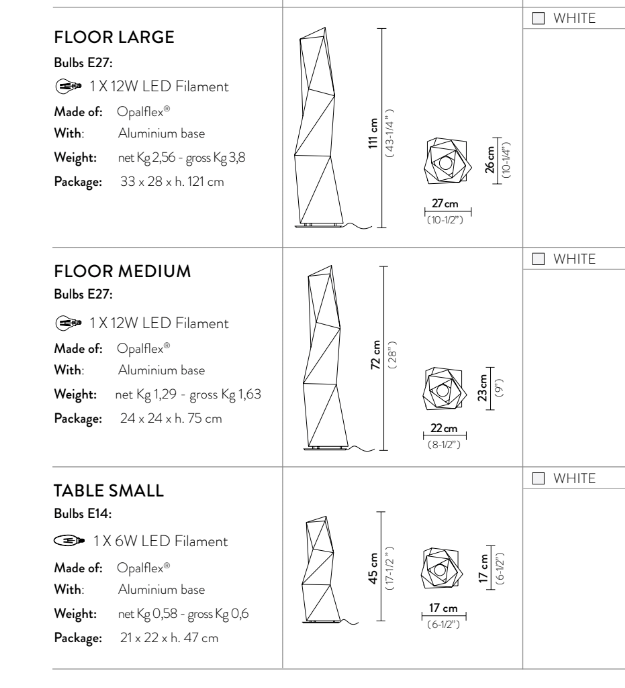 Sculpturale, dynamique et contemporaine, inspirée par les sculptures les plus emblématiques de Brancusi, Diamond a un design géométrique qui, lorsqu’il rencontre la lumière, ressort jusqu’à en accentuer les formes à facettes. Une sculpture lumineuse qui, dans ses trois tailles différentes, reste parfaitement adaptée à tous les ameublements : de la chambre à coucher pour éclairer la table de chevet au salon moderne, surtout en plusieurs exemplaires.