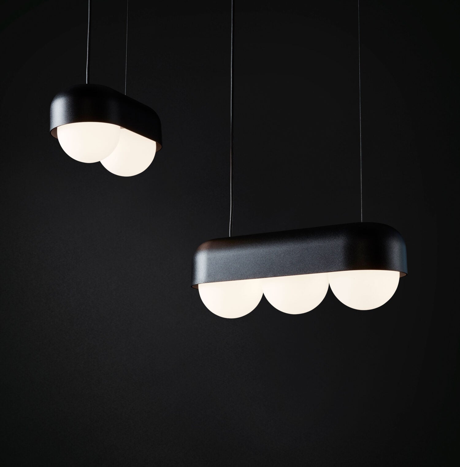 Une collection ludique composée de sphères en verre opale blanc et d'un boîtier en aluminium. Grâce aux différentes longueurs du boîtier, vous pouvez jouer avec le nombre de sphères. Vous pouvez ainsi créer une composition harmonieuse pour chaque pièce. Disponible en blanc et en noir, DICE peut être utilisé comme plafonnier, applique murale ou suspension.