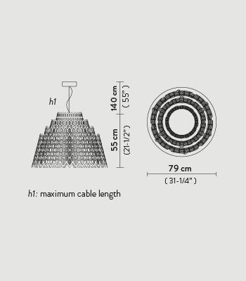 The idea is born from the world of illusion, the challenge of transforming a two-dimensional element into volumes that multiply to infinity; a light reminiscent of a wave chasing race and the transparency of the moment in which they diminish, are dematerialized by sending endless drops of light. In all its multifarious variations, Charlotte seems to be modeled in a single block with a laborious frame, with impalpable features, like that of a hive, through which one can penetrate by hexagonal concentric and hypnotic forms to have a perspective always renewed, whatever the point of view.