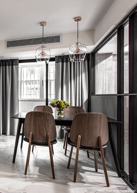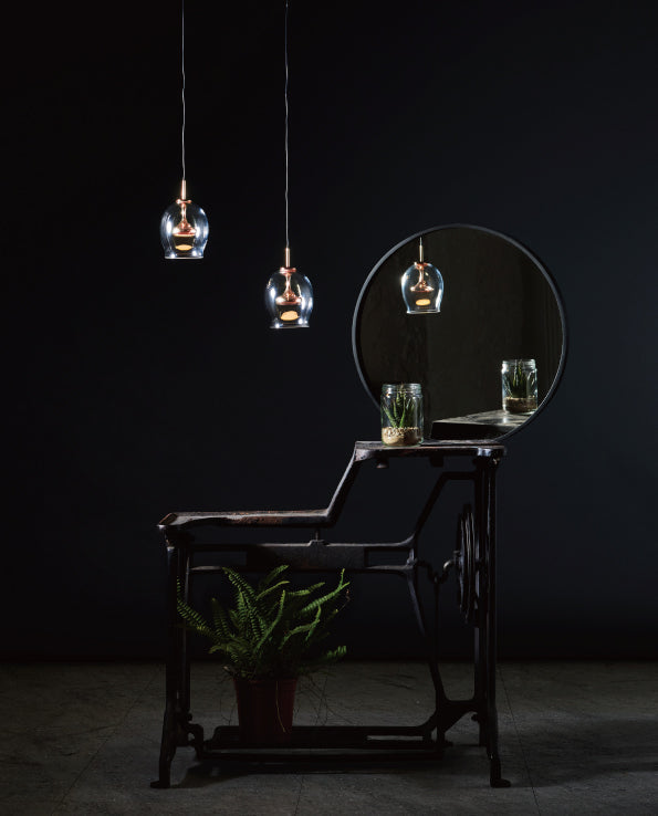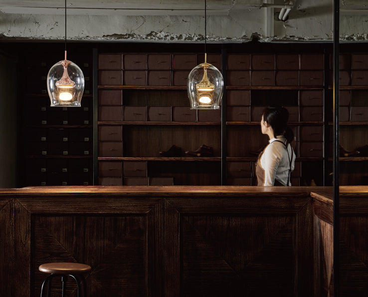 Lorsqu'il est allumé, le MOAI Pendant L fournit une lueur atmosphérique et ambiante alors que la lumière se déplace à travers la sphère et rebondit sur l'abat-jour en verre transparent créant une réflexion unique en forme d'œuf. Une belle silhouette rappelant les statues de pierre de l'île de Pâques, le MOAI est dynamique qu'il soit allumé ou éteint.