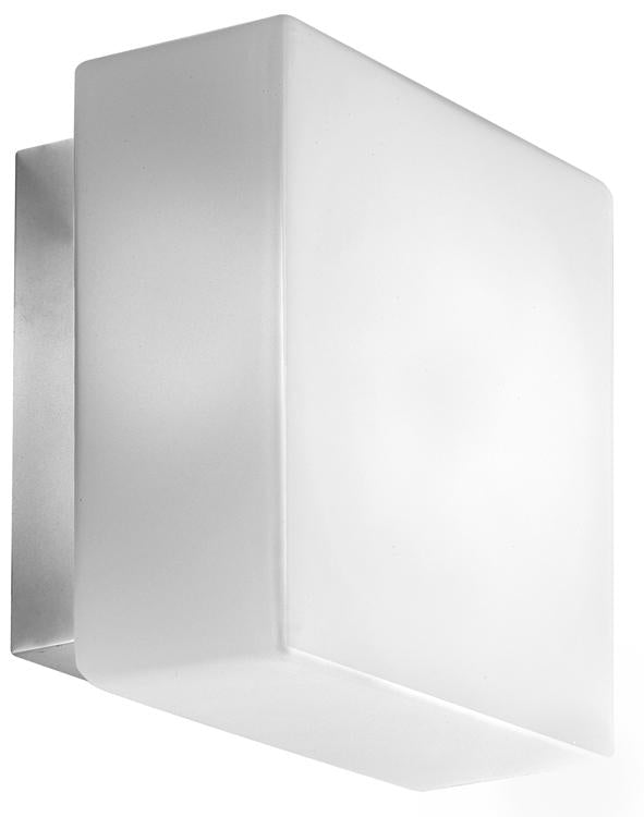 Tucson is a light square wall sconce with satin white glass in polished chrome finish.