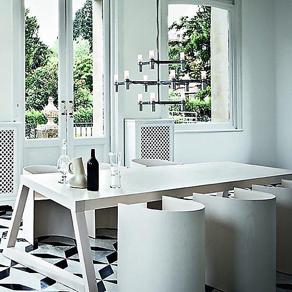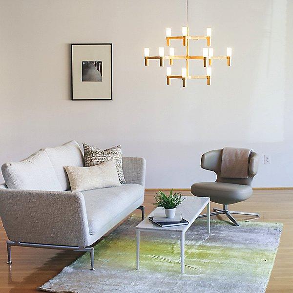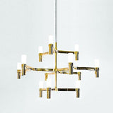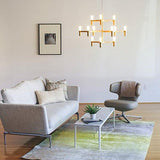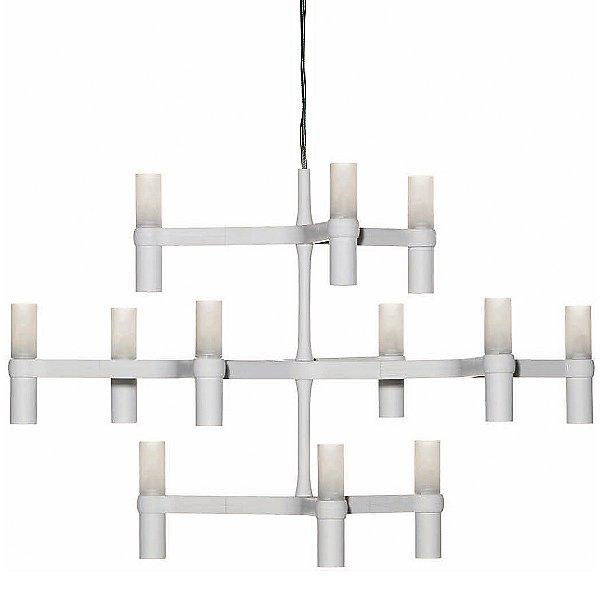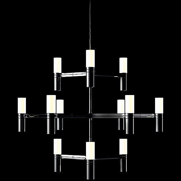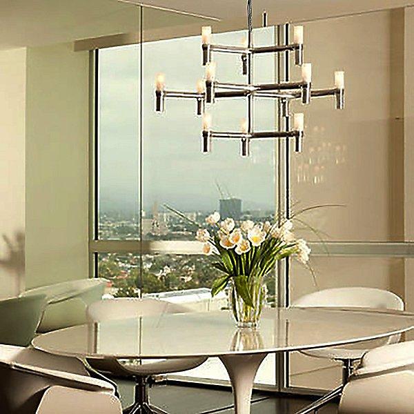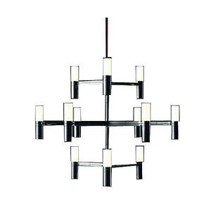 Famille de lustres, appliques murales et de lampe de sol avec structure modulaire en aluminium moulé sous pression et diffuseurs en verre sablé. Structure en aluminium poli à la main. 12 X AMPOULES LED G9 .