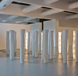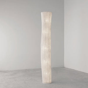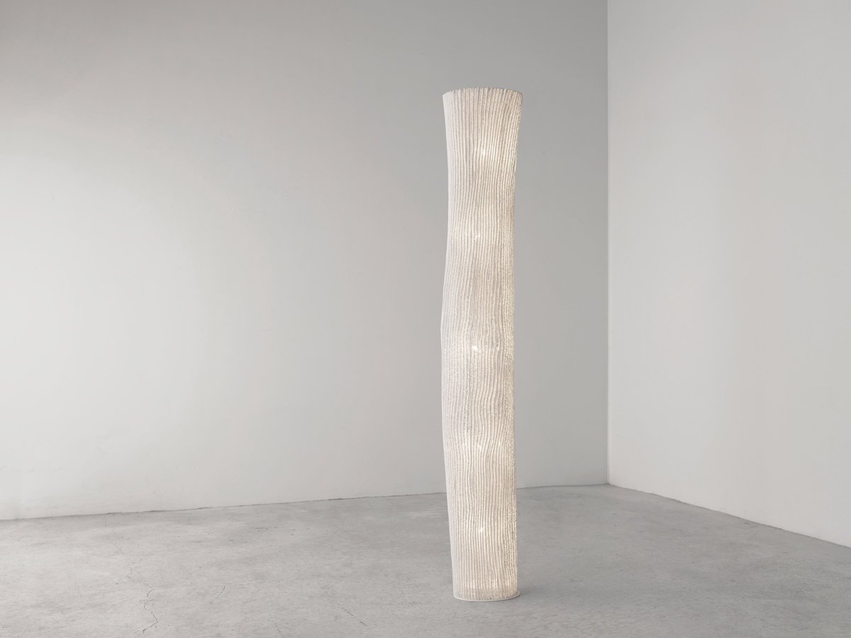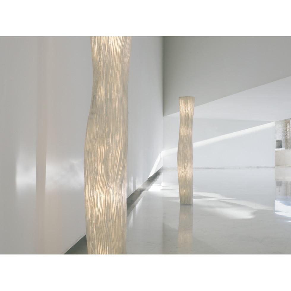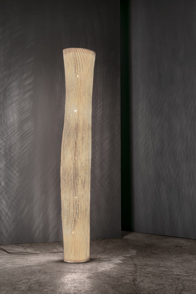 The Gea collection is named after the primitive goddess, mother earth. The slender lamps that form it, seem to be feminine erected figures that defies their vertical position, wrapped in a fluted veil of painted stainless steel mesh that clings to them through a zip. Its light is soft and enveloping, spread uniformly over all its structure. The main piece of the collection, which achieved a Good Design Award in 2007, is the floor lamp, an elegant sculptural volume that blends in any environment, providing a note of distinction to the room.