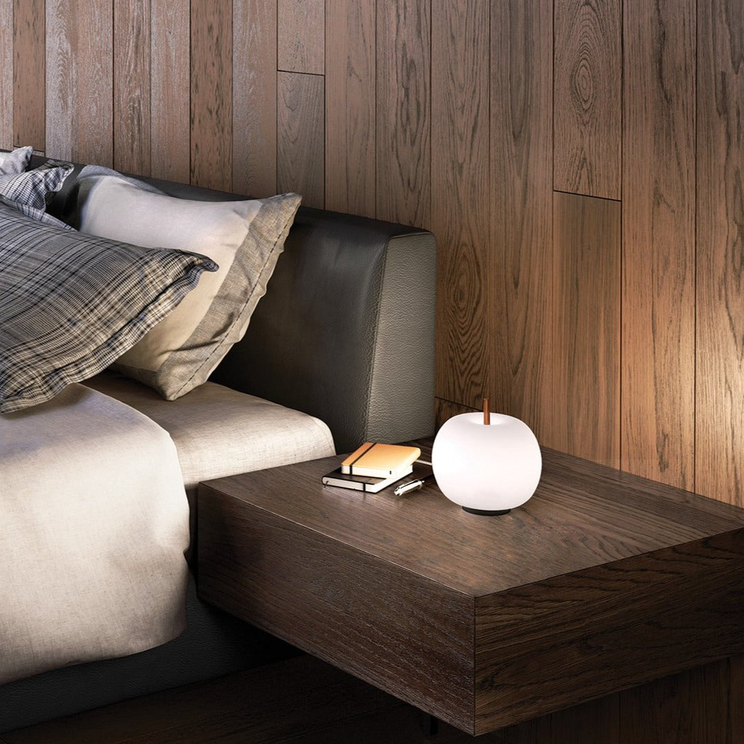 La forme ronde du diffuseur en verre doux au toucher. La force de la tige métallique qui la traverse. Un nouvel équilibre pour une lampe de déclaration. Même dans la version portable, à emporter partout avec vous, du salon à la terrasse, au bureau ou à la chambre.