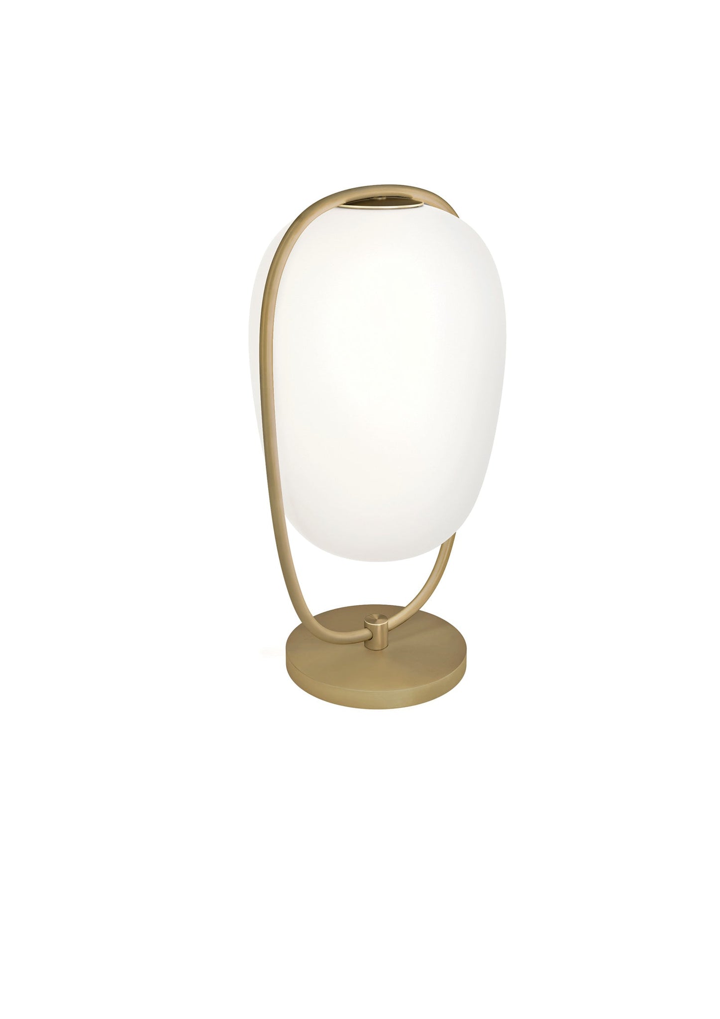 Lampe de table. Diffuseur opale composé de deux couches de verre soufflé. Structure enduite métallique.