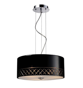 Modern 3 Light Drum Pendant with Black Carved Glass in Polished Chrome Finish