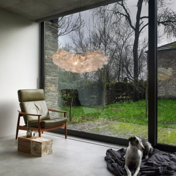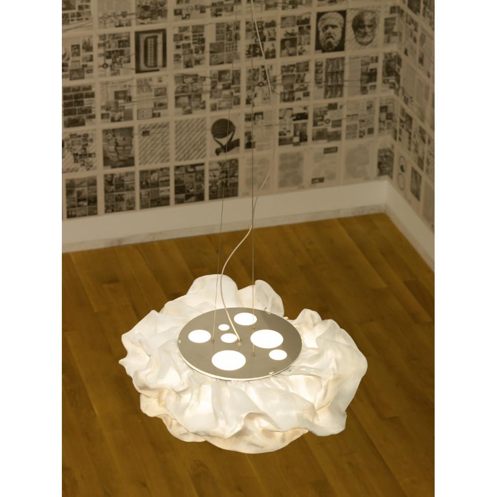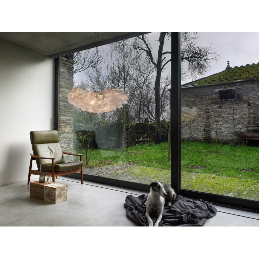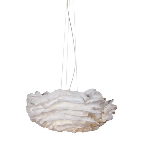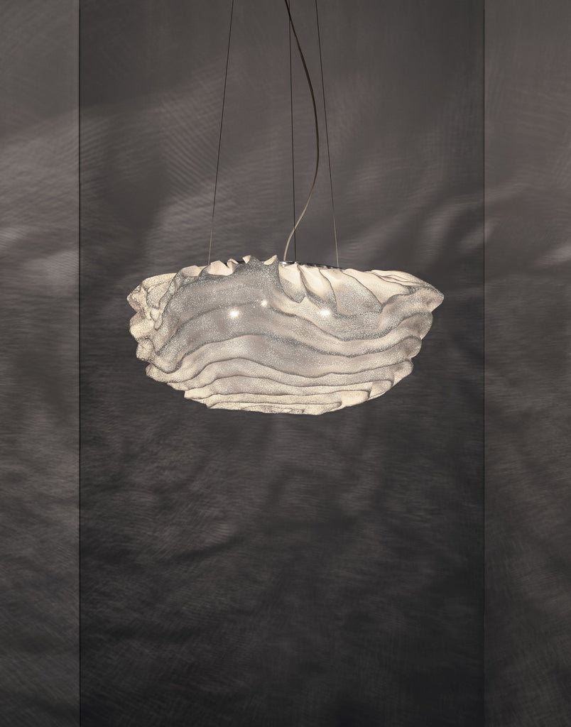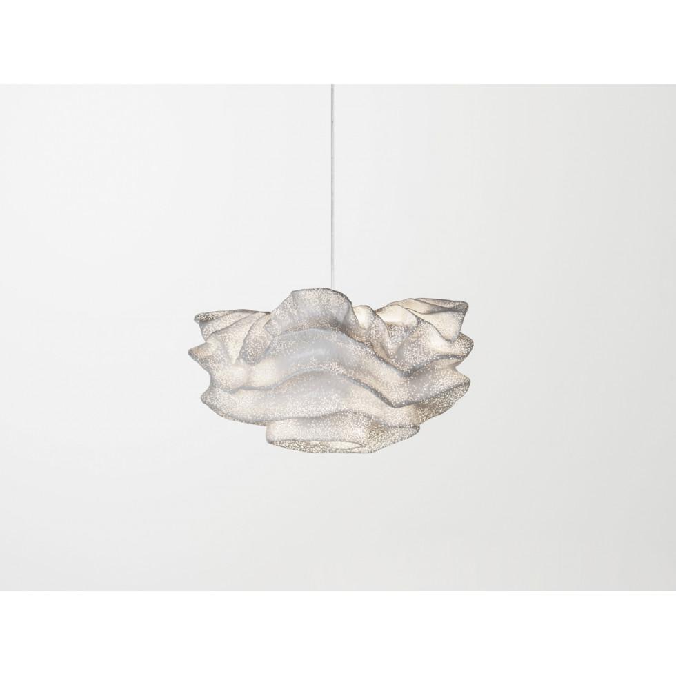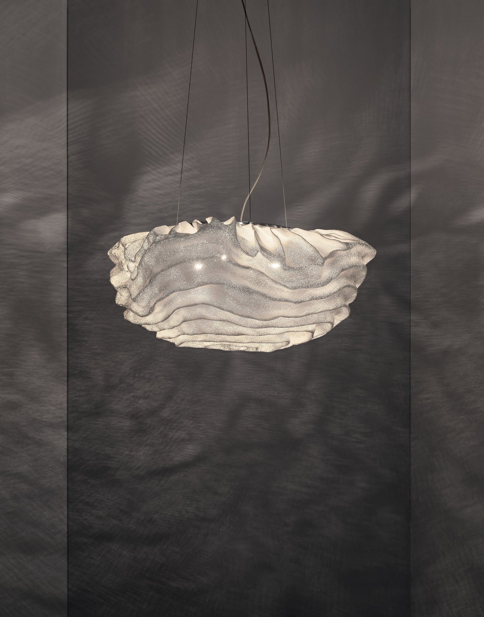 A collection that reflects the extreme malleability of painted stainless steel mesh better than any other. The unrepeated organic forms of the Nevo, with its hand, molded curves, makes every lamp a unique design, different to the rest. Its volumes seem to be alive, in constant evolution and movement, due to their shape and the folds in which the light plays. It is one of the largest collections of the firm, including pendant lamps, floor and wall ones, and even chandeliers in cascade.