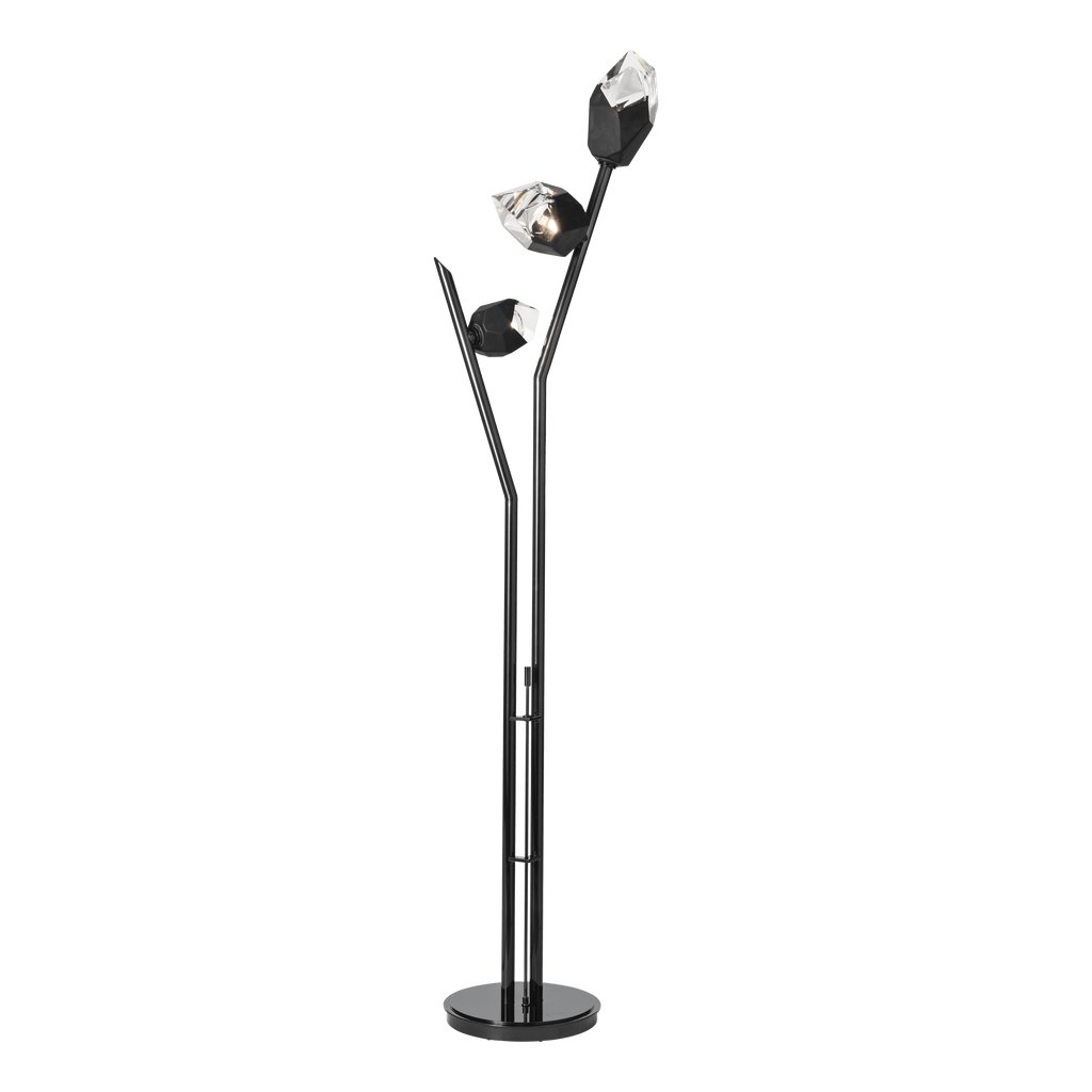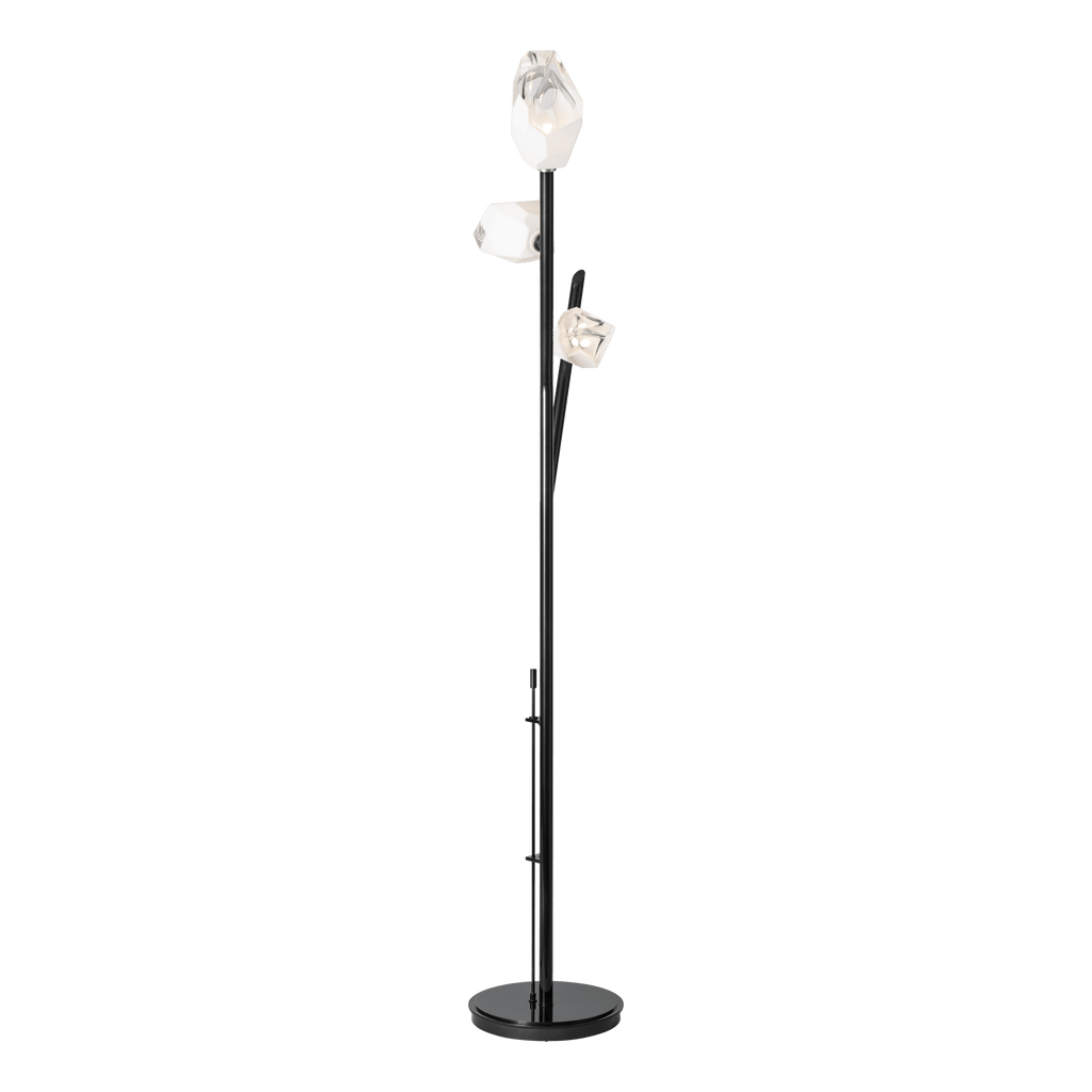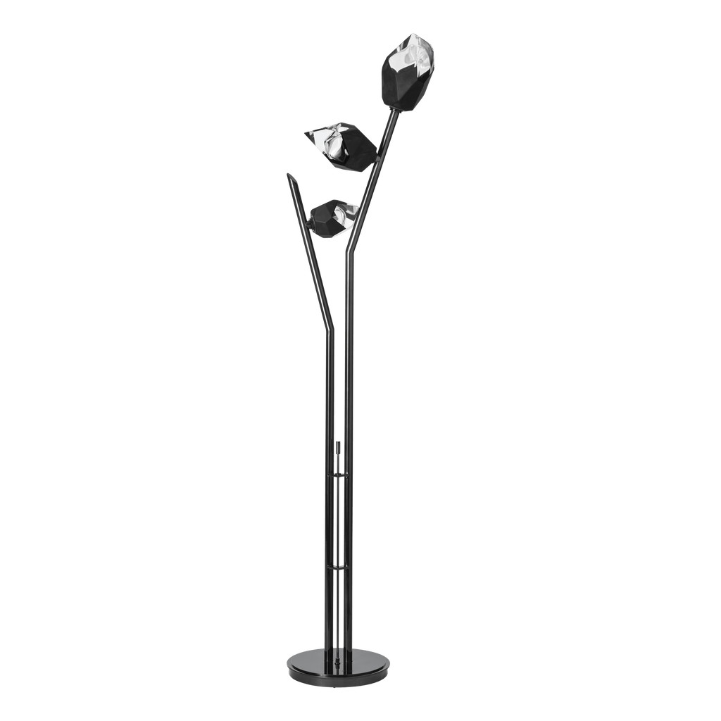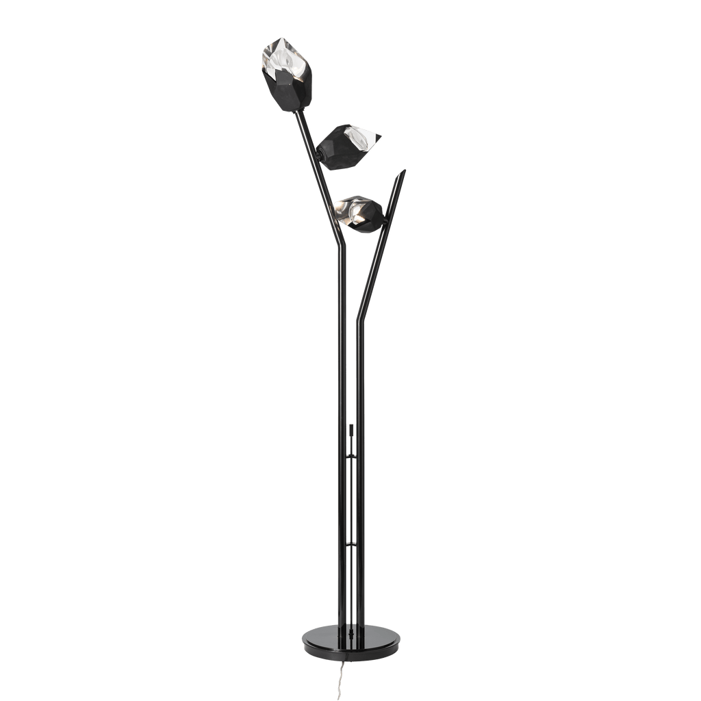 Chaque torche Chrysalis comprend trois pièces de verre soufflé exquises, créées à l'aide de techniques complexes de soufflage de verre. D’épaisses couches de verre sont soigneusement soufflées dans un moule, formant ainsi la forme initiale. Ensuite, avec précision et finesse, une partie de la couche externe de verre coloré (noir mat ou blanc mat) est retirée grâce à un meulage et un polissage astucieux des facettes, révélant l'éclat intérieur caché du verre transparent de son lampadaire sculptural.
