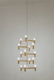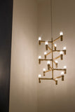 Famille de lustres, appliques murales et de lampe de sol avec structure modulaire en aluminium moulé sous pression et diffuseurs en verre sablé. Structure en aluminium poli à la main. 12 X AMPOULES LED G9 .