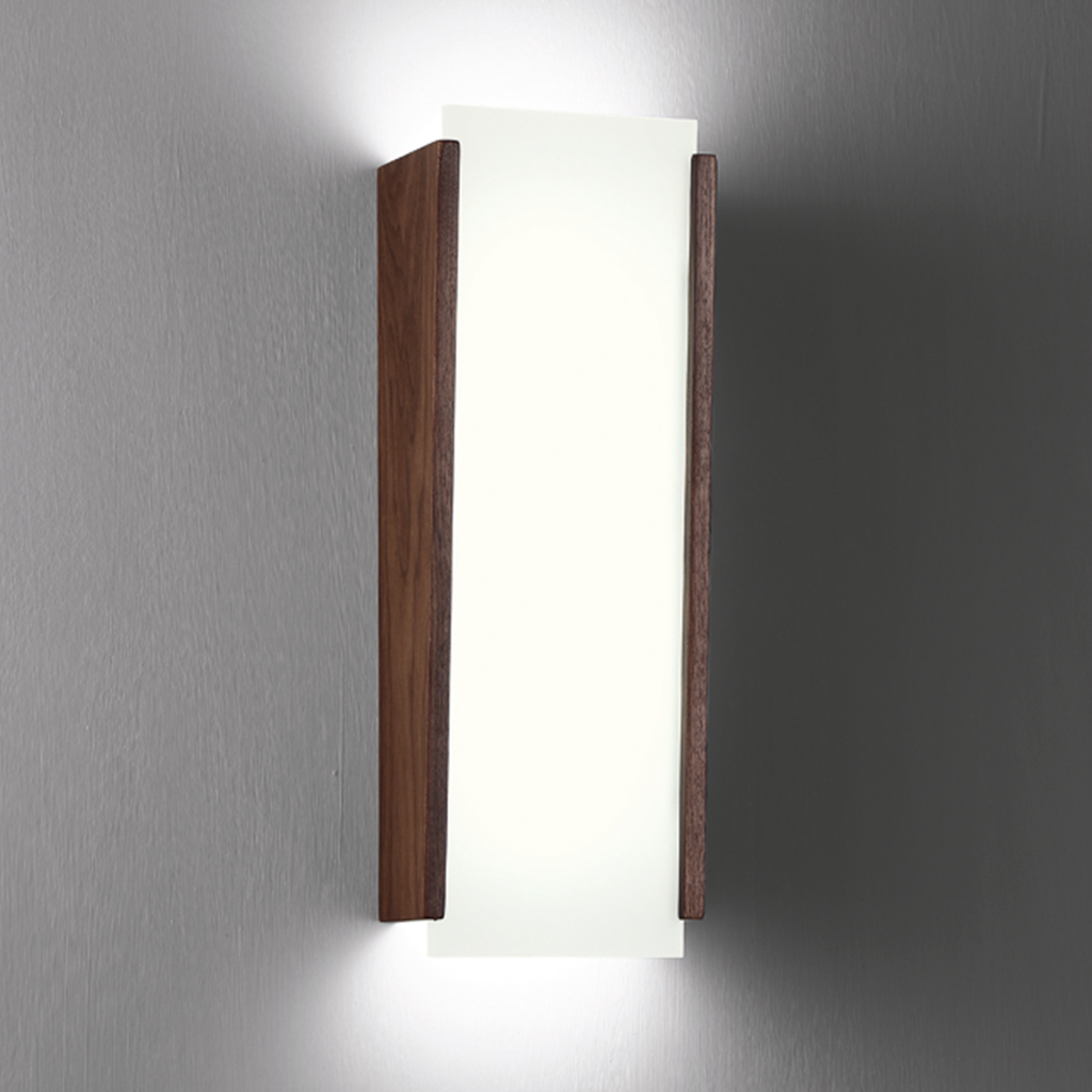 Une fine feuille de lumière repose entre deux panneaux de bois de noyer foncé sur cette applique superlative, conférant une élégance hors du commun à votre salon, restaurant ou environnement d'hôtel. Le contraste des matériaux et des formes géométriques n'est surpassé que par la qualité exceptionnelle des modules LED à l'intérieur, qui projettent une belle lumière ambiante uniforme.