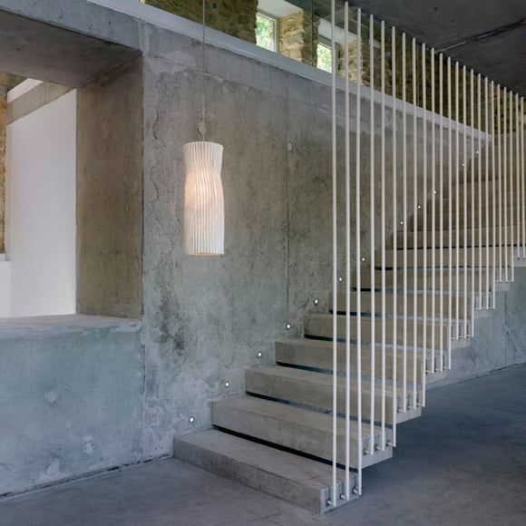 La collection Gea tire son nom de la déesse primordiale, la terre mère. Les luminaires stylisés qui le composent ressemblent à des figures féminines debout qui défient la verticalité, enveloppées dans un voile nervuré de maille d'inox peint. La suspension Gea conçue par Arturo Álvarez émet une lumière douce et enveloppante qui est uniformément répartie dans toute la structure. La pièce principale de la collection, qui a remporté un Good Design Award en 2007, est le lampadaire, un volume sculptural élégant qui se fond dans n'importe quel environnement, ajoutant une note de distinction à la pièce.
