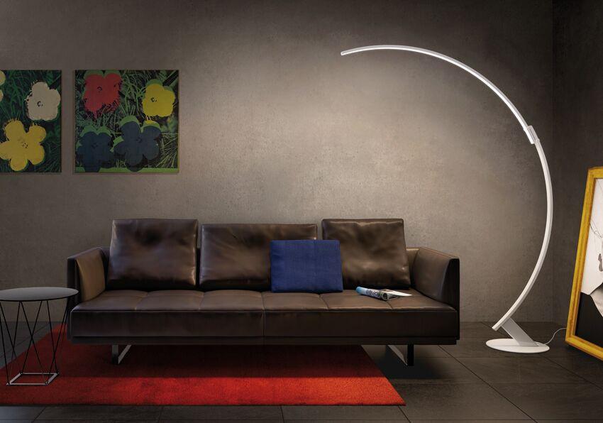 Ce lampadaire est caractérisé par sa spécificité et sa polyvalence, car il a un corps lumineux monté sur un rail et peut ainsi être déplacé de façon continue.