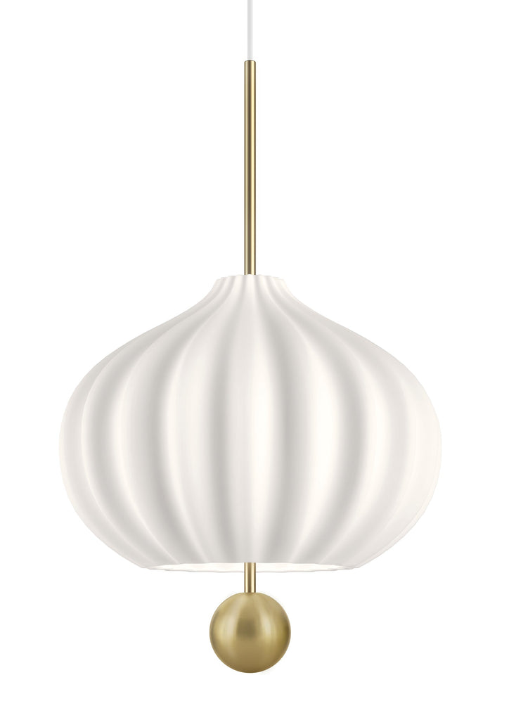 Comme dans un herbier sophistiqué du design, les lignes gentilles de Lilli rappellent la beauté d’une fleur rare. La corolle délicate renversée du lis martagon est réinterprétée en une lampe originale. La géométrie souple du diffuseur en verre opale blanc s'assortit de marnière harmonieuse au pistil en laiton, avec un effet encore plus précieux.