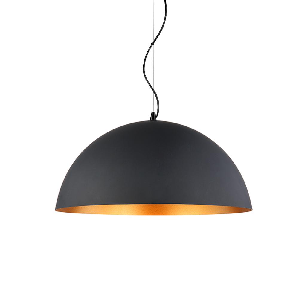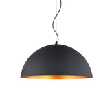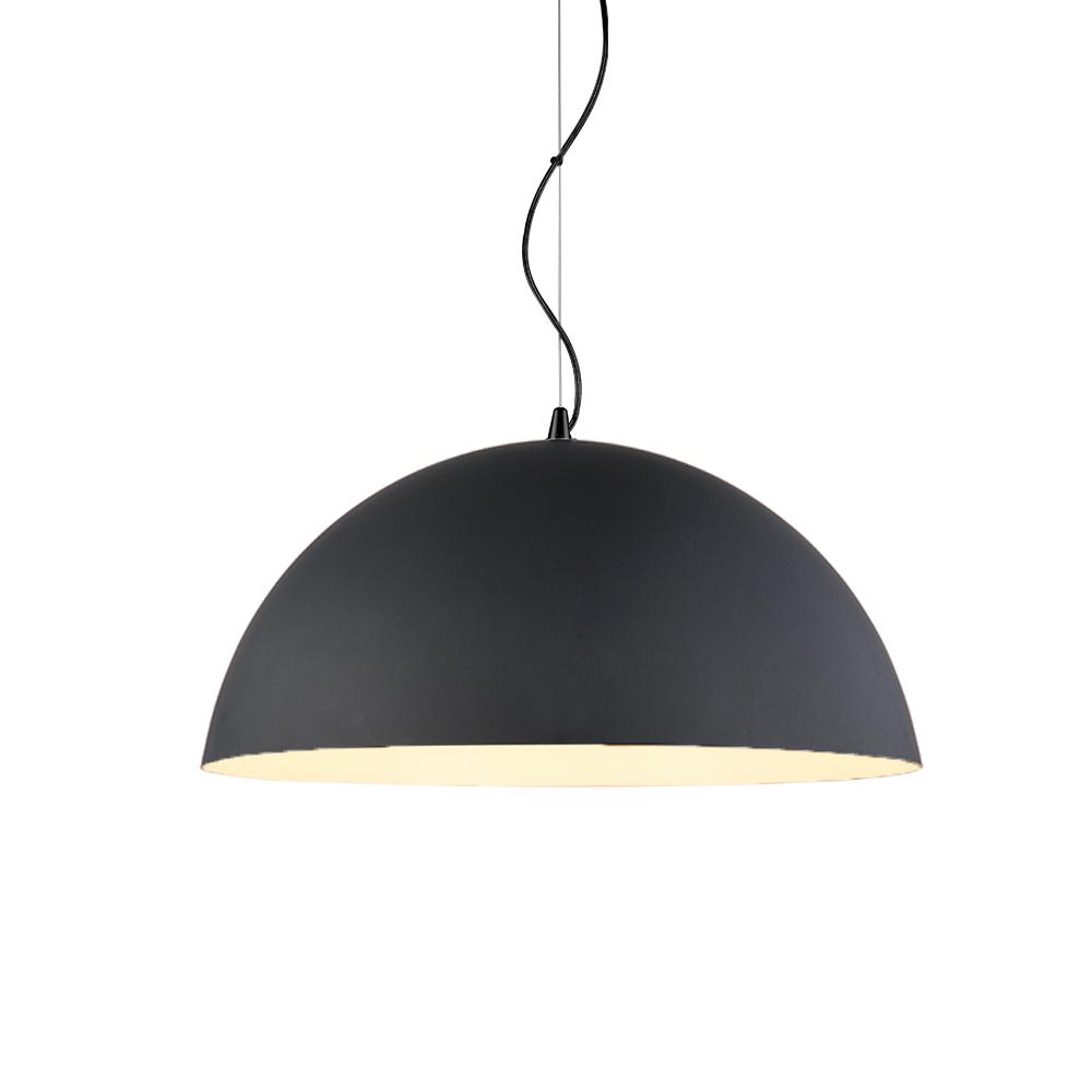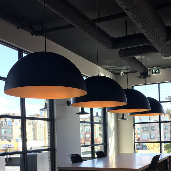 Grand dôme noir mat à 3 ampoules à l'extérieur - Suspension intérieure blanche avec cordon de 8 pi et câble d'avion.