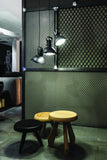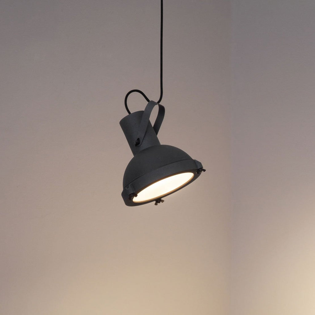 Mini version réglable du Projecteur 365. Disponible dans les versions pince, mur / plafond et suspension. Corps en aluminium peint en bleu nuit, sable blanc ou moka. Verre diffuseur courbé et sablé dans la partie intérieure. Pince et auvents peints en noir mat, vis et petites pièces métalliques en chrome noir. Flux lumineux diffus et réglable. La prise E26 permet l’utilisation de sources fluorescentes et LED.